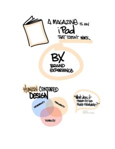 But let’s get back to those DX Summit visuals, and, just importantly, the lessons learned she captured. She specifically cited Gerry McGovern, author, founder and CEO of Gormanston, Ireland-based Customer Carewords, who encouraged DX Summit attendees to make their customers the center of the universe.
